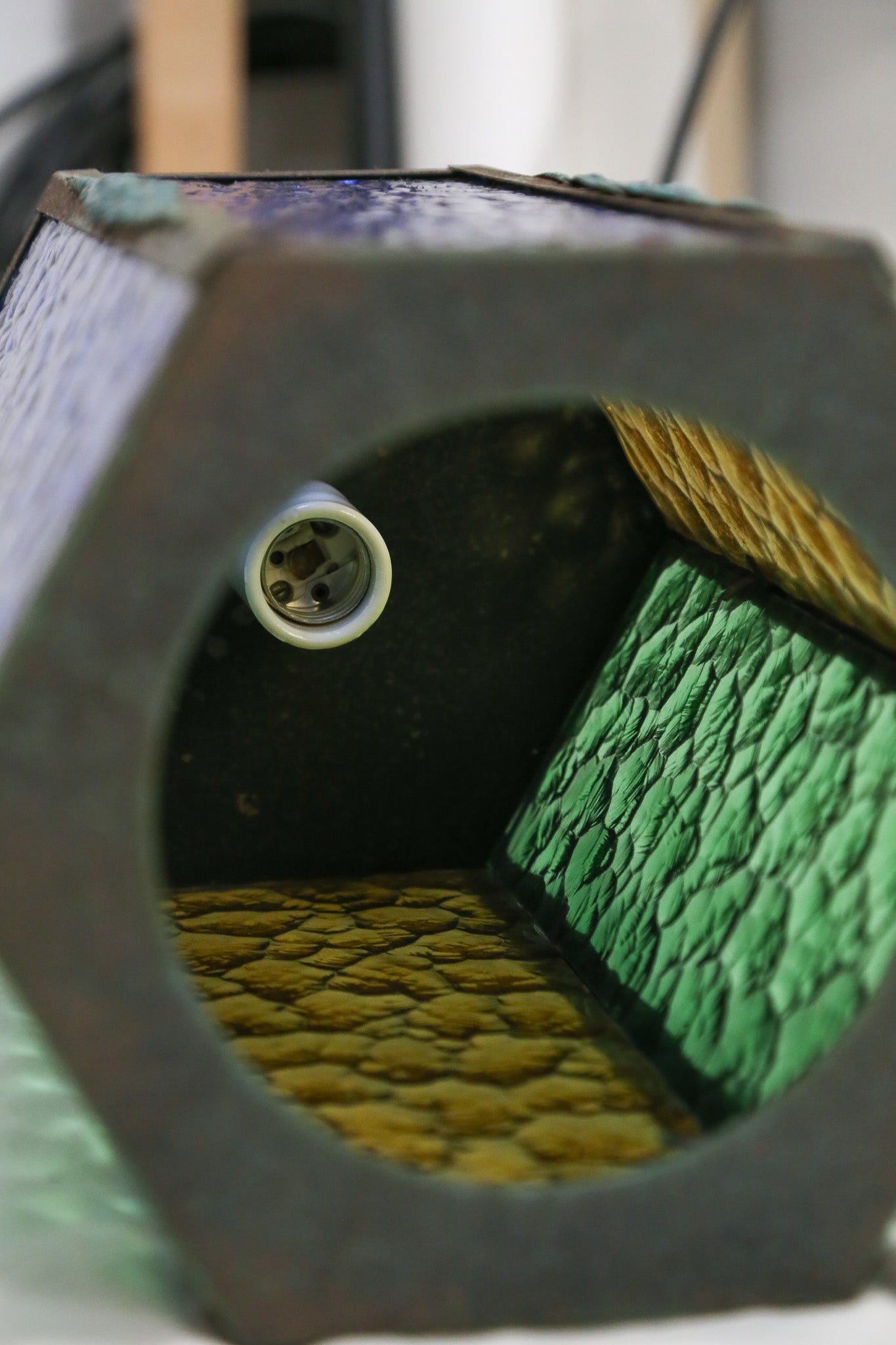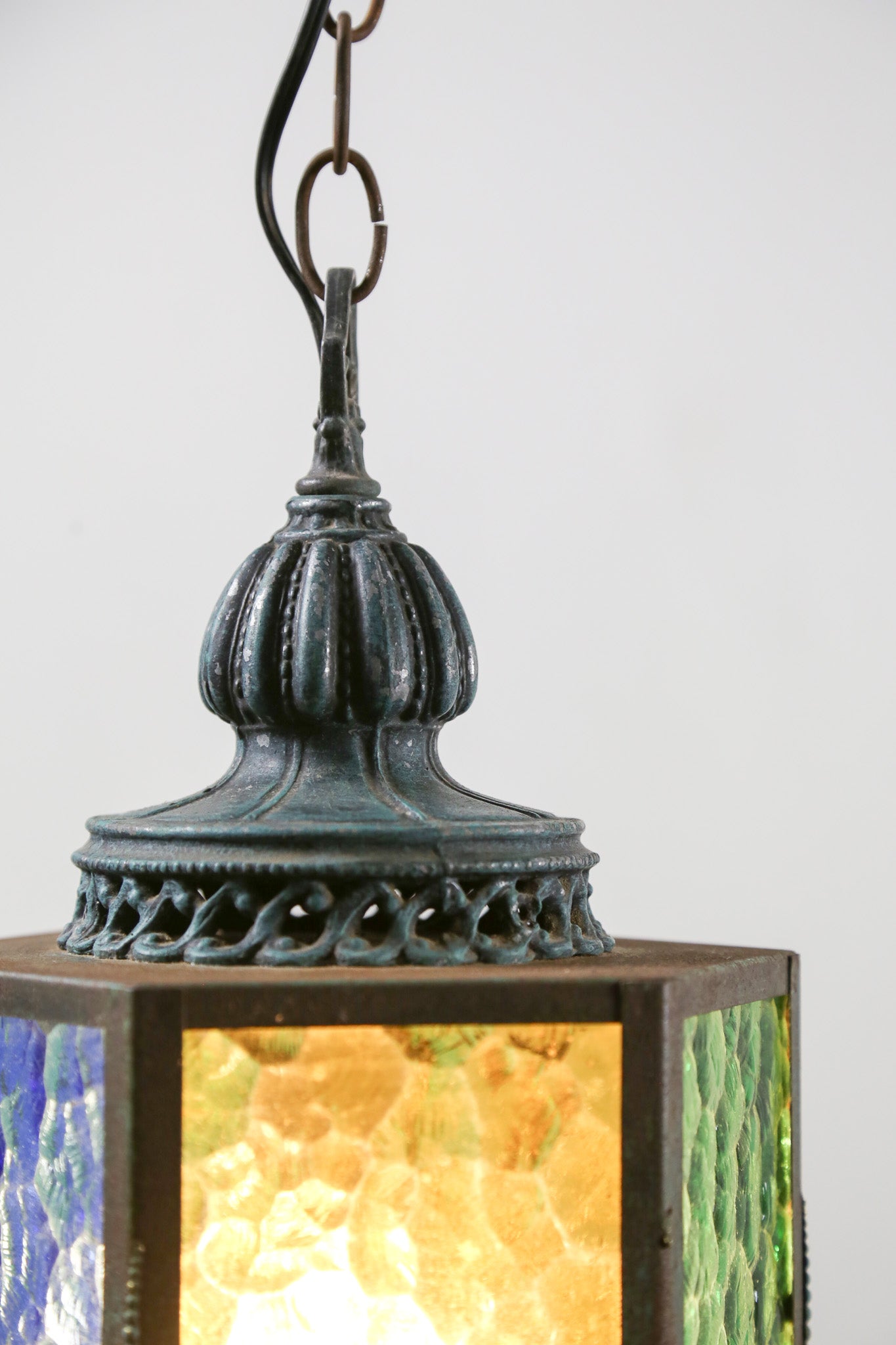 Antique Hexagonal Stained Glass Pendant Light / アンティーク 六角形 ステンドグラス ペンダントライト