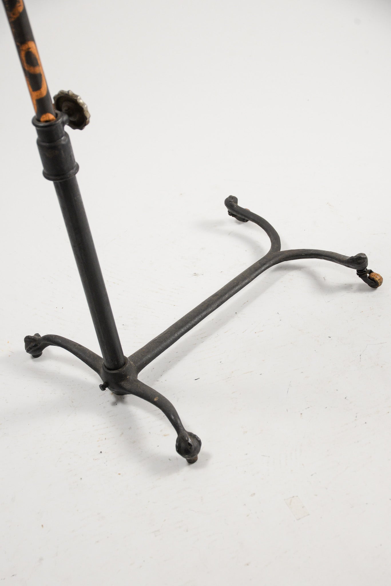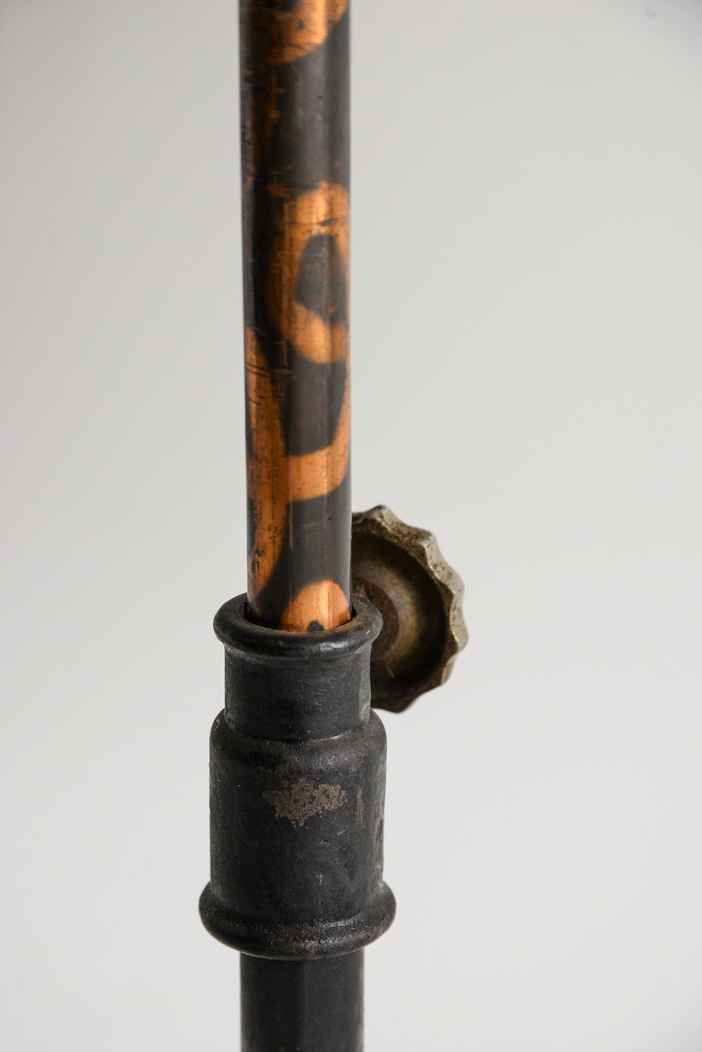 これは19世紀末から20世紀初頭にかけてのアメリカで流行した仕上げで、鋳鉄の上に銅メッキを施し、その上から黒いエナメルを塗って焼き付けた後、部分的に磨き出すことで、下地の銅色を虎斑模様(タイガーストライプ)のように浮かび上がらせる手の込んだものです。