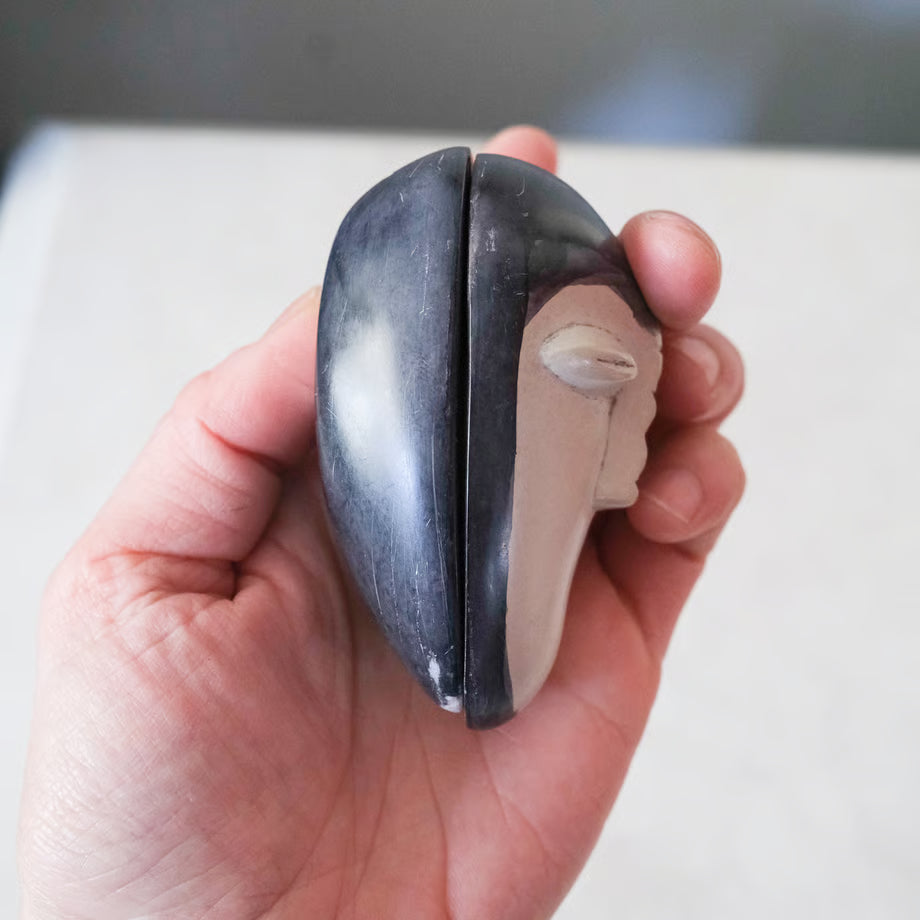 陶器製ミステリアスな顔の小物入れ。